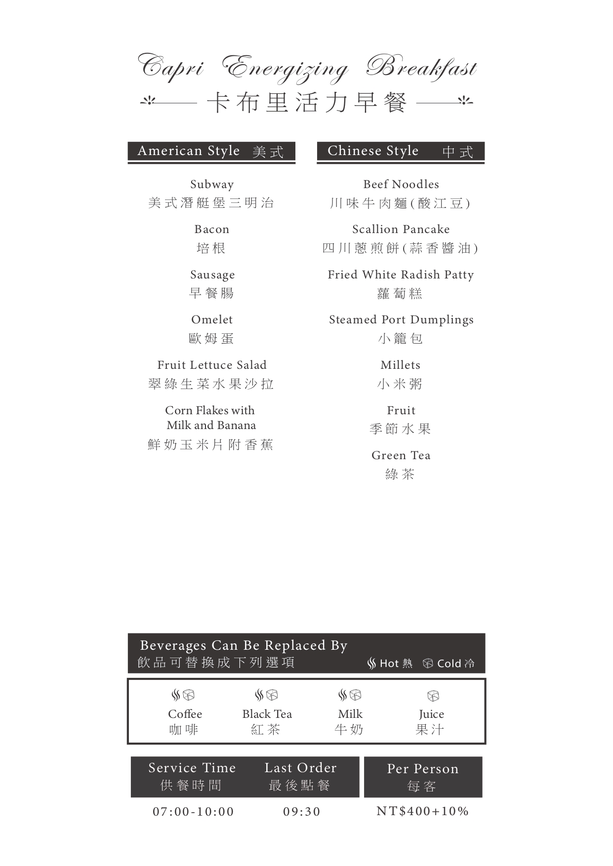 用餐時段:早上 07:00 – 10:00(最後點餐時間 09:30)