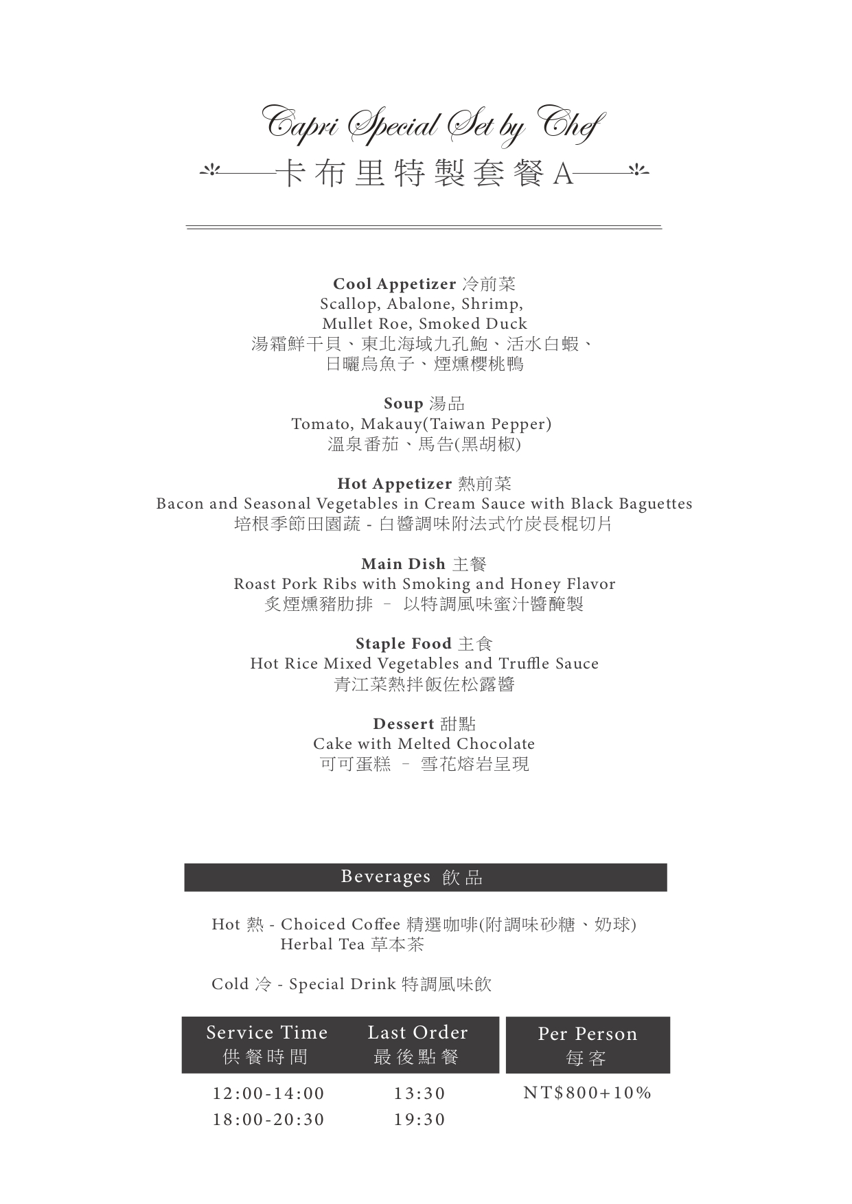特製套餐 NT$800+10%