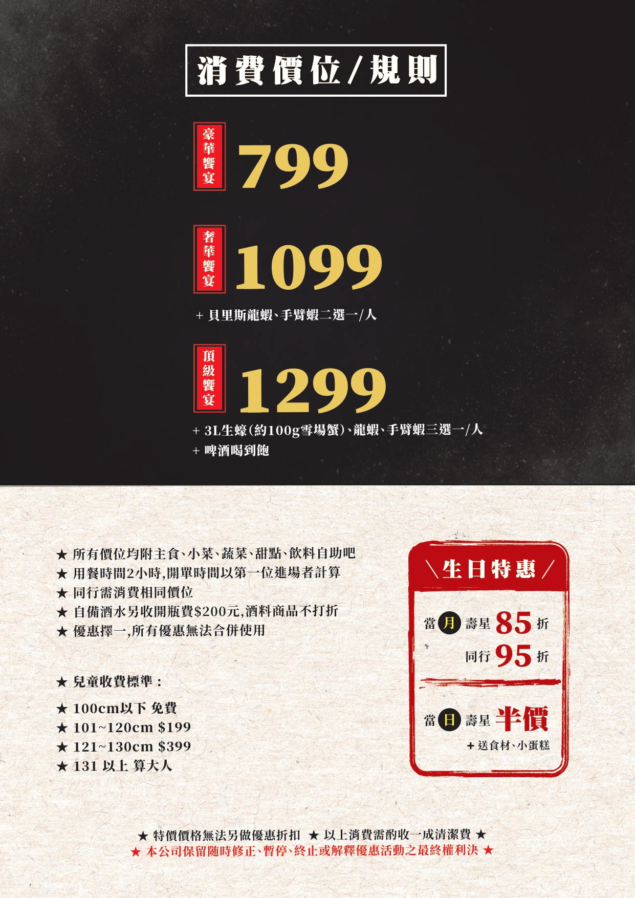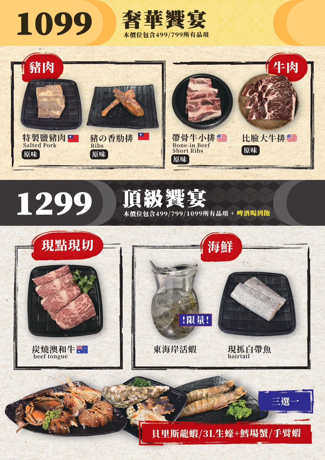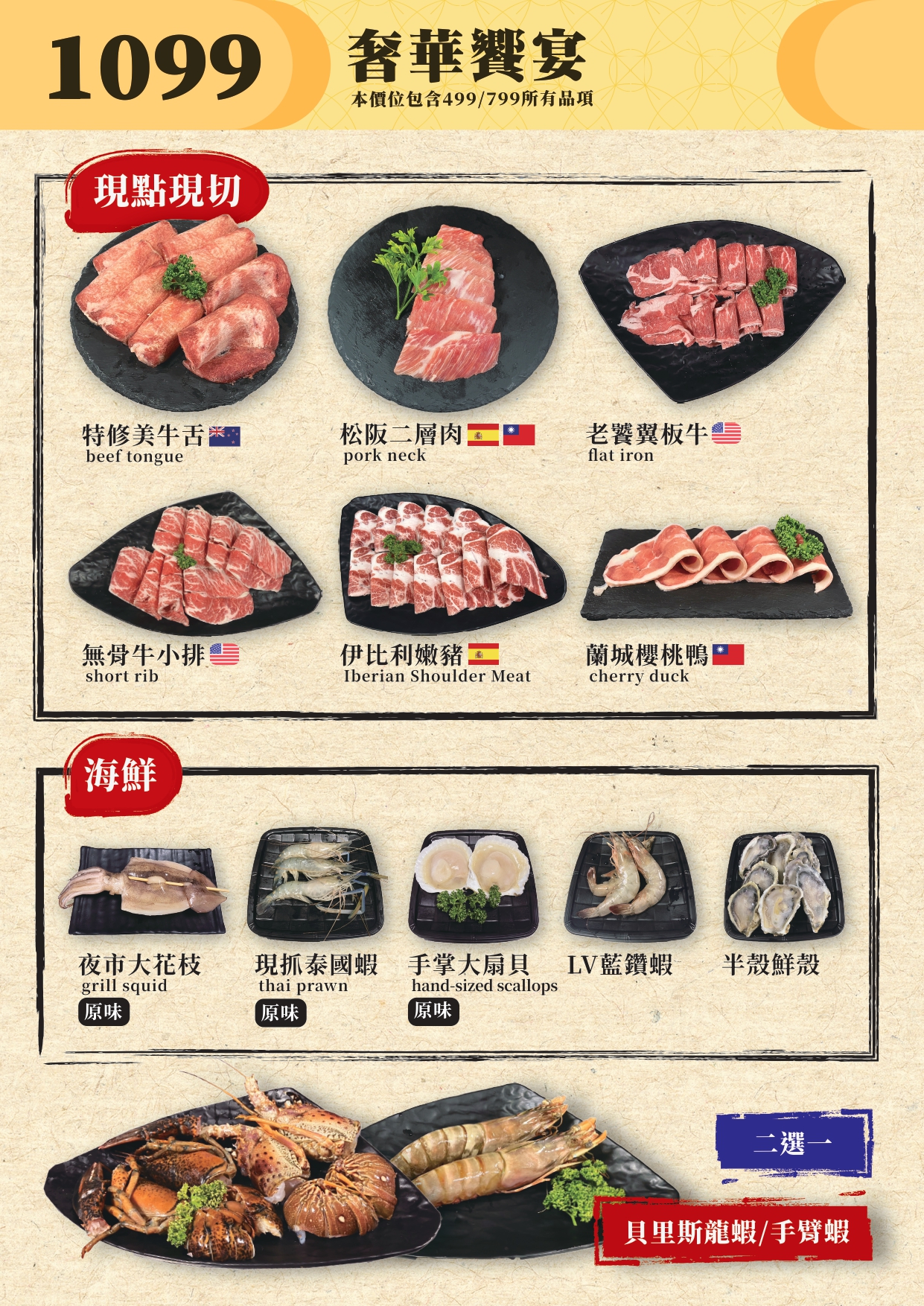 奢華饗宴 $1099 | 頂級肉品搭配多樣配菜,尊貴享受