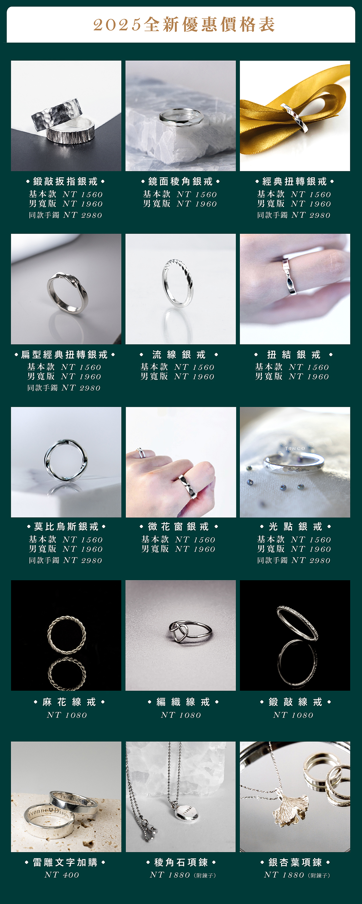 ・ 價格包含:「材料費、刻字、精美包裝、拭銀布」