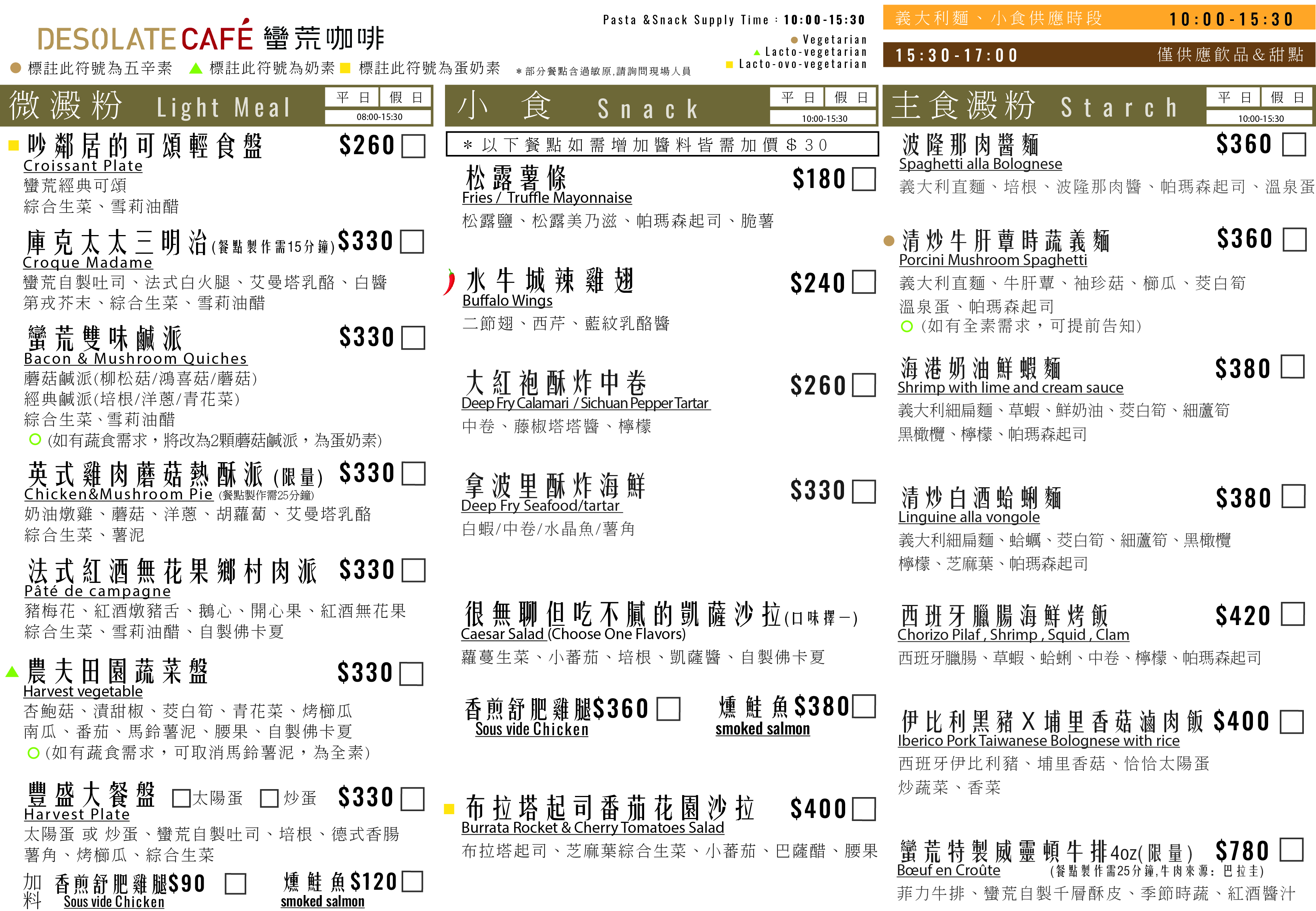 *義大利麵主食&鹹食供應時段:10:00-15:30