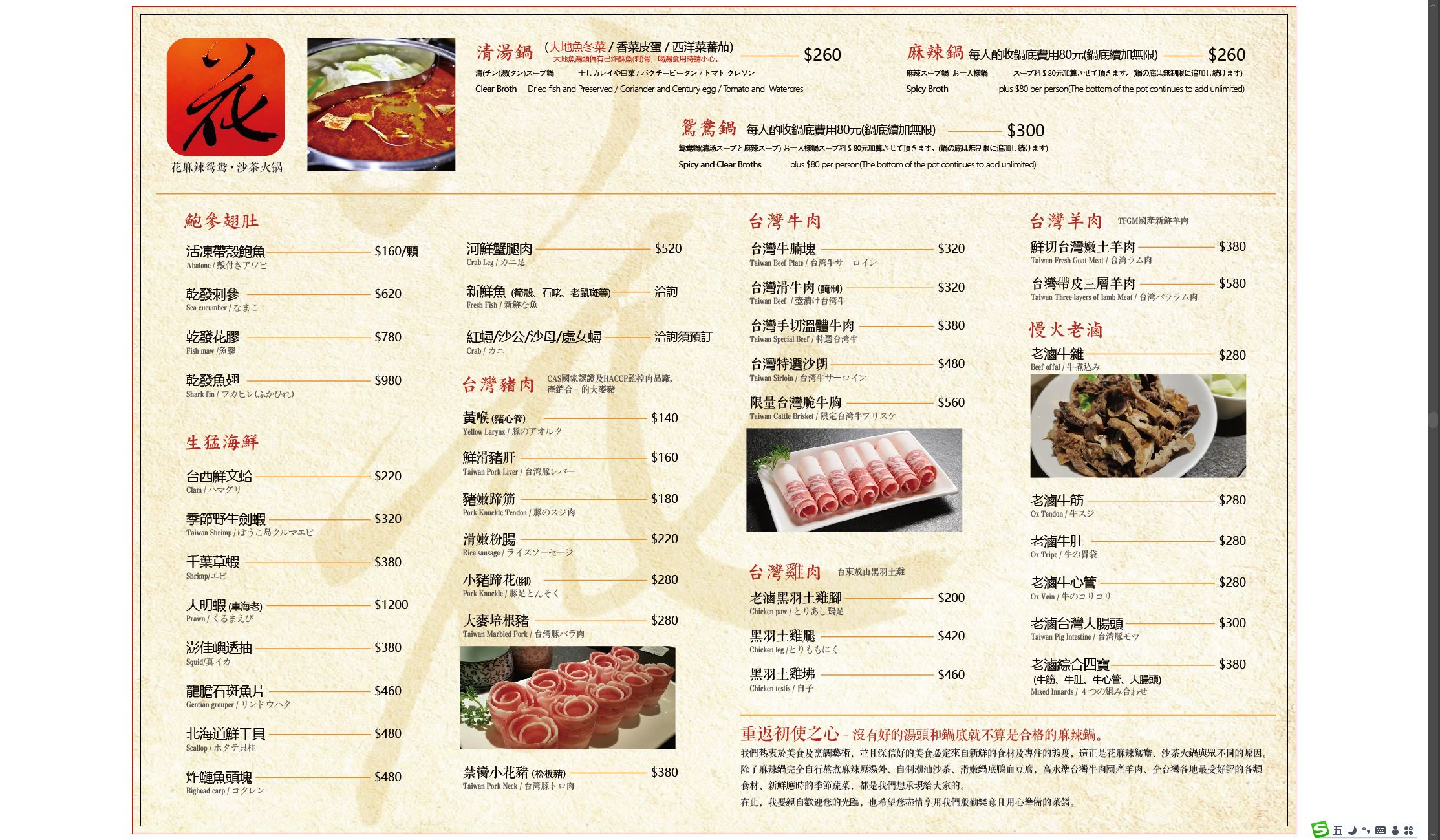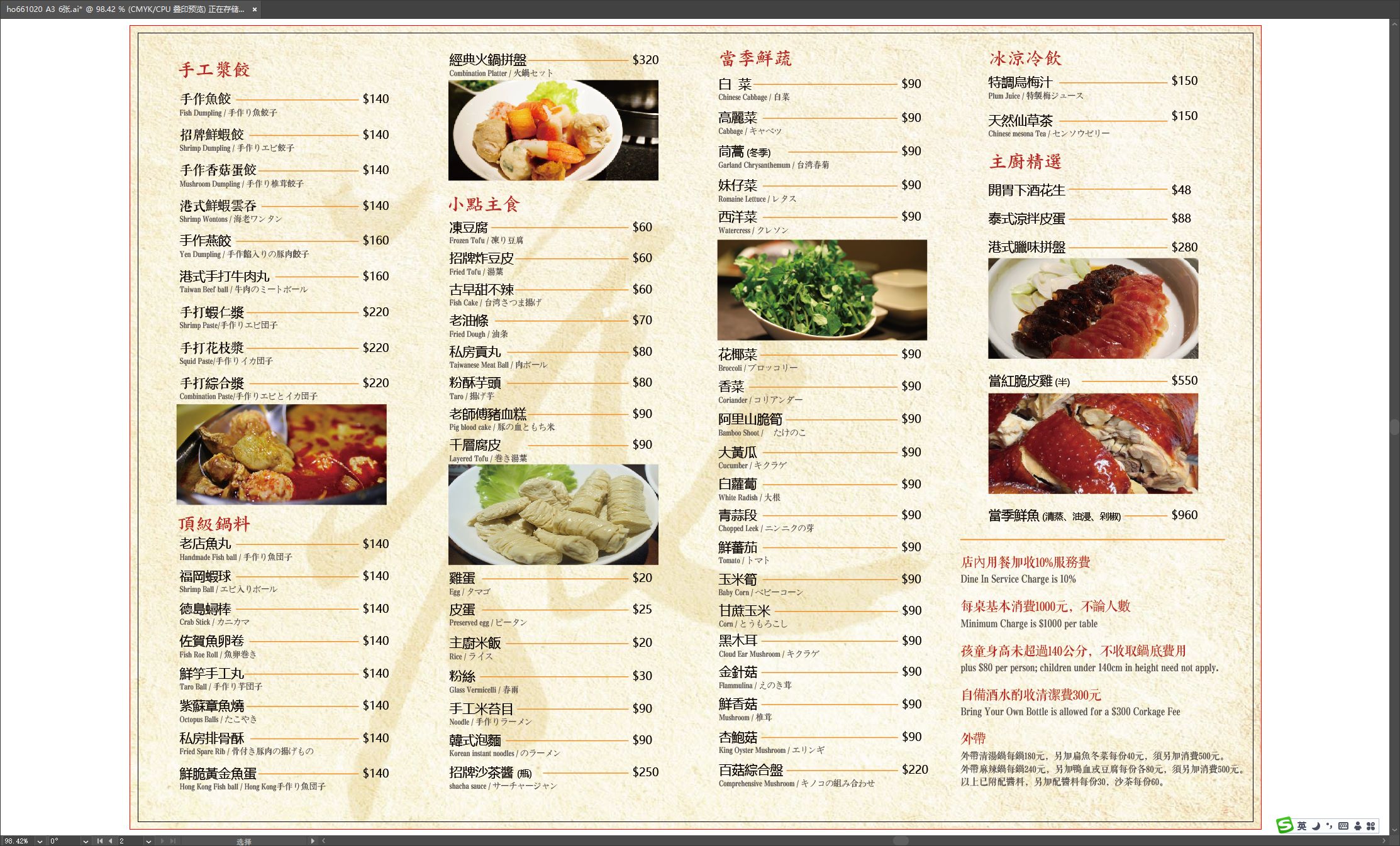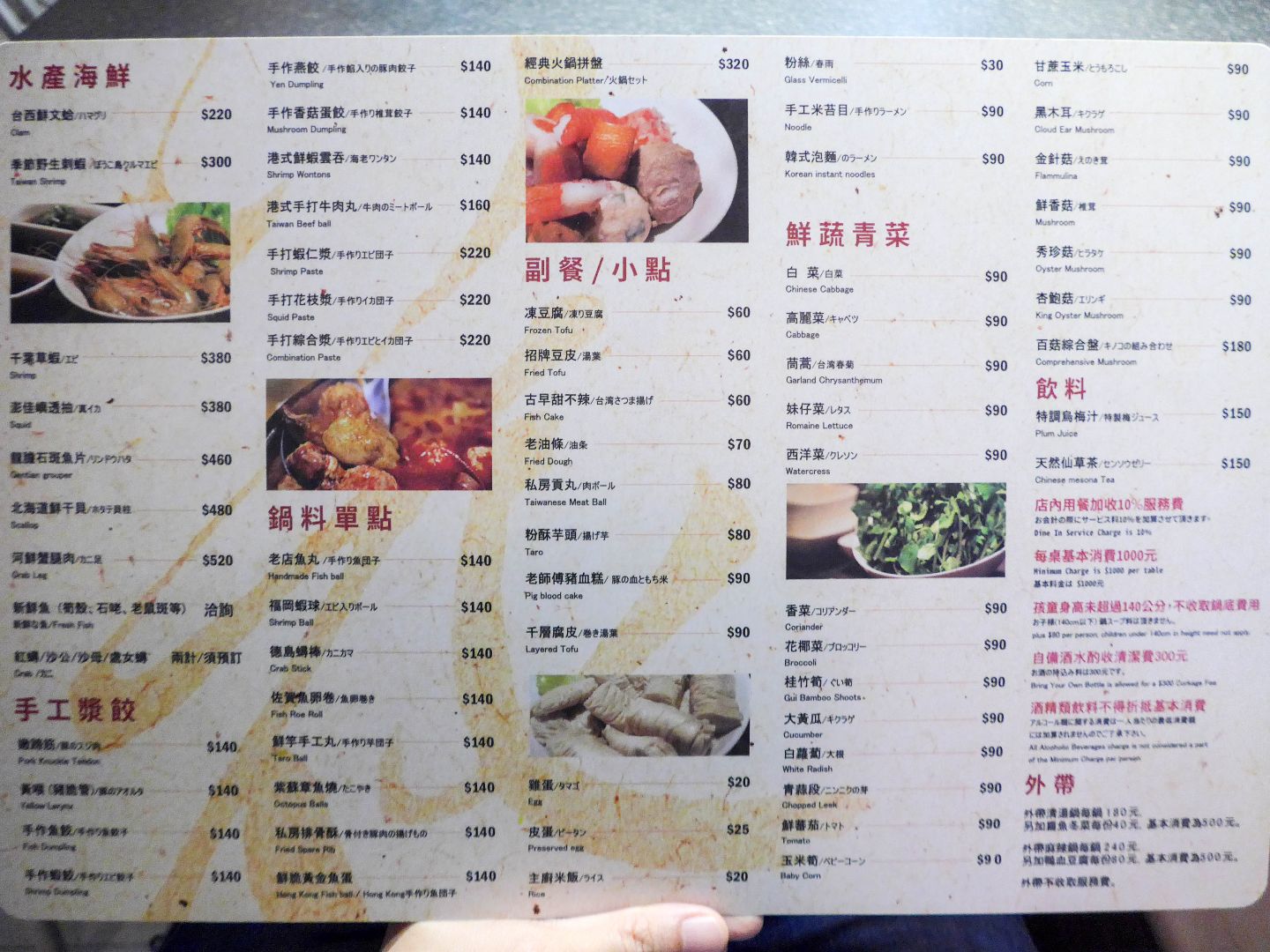 l 店內用餐加收10%服務費