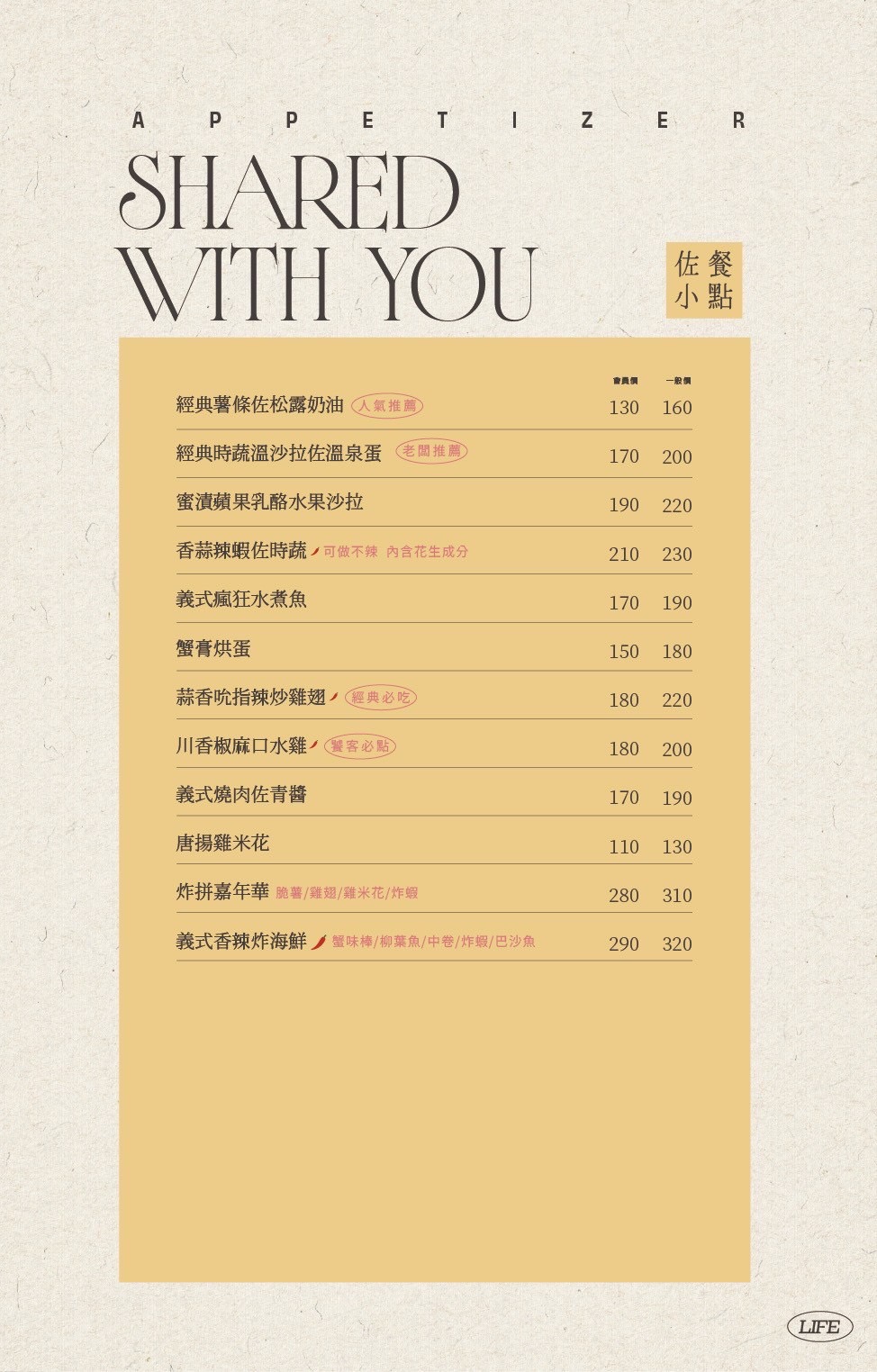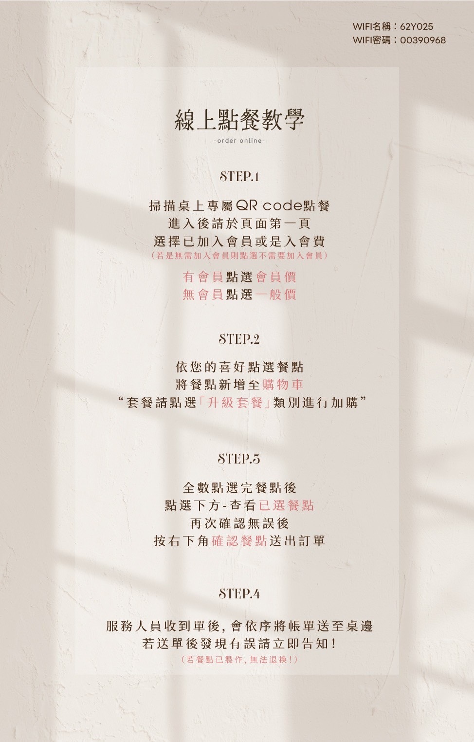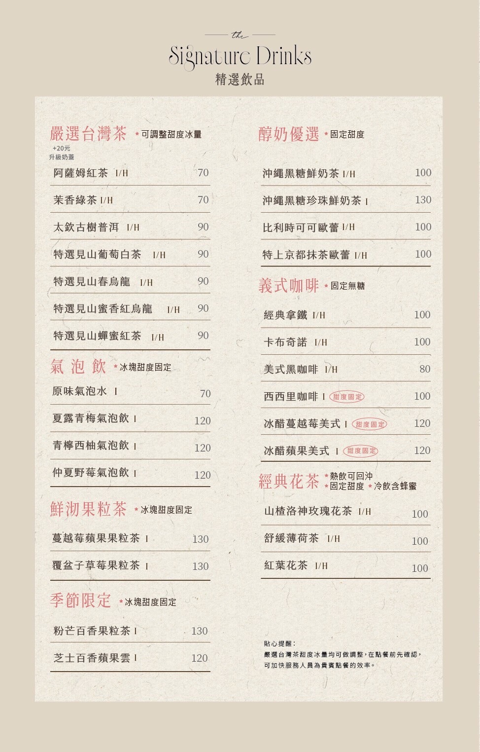 ・用餐時間為入座後兩小時,建議人數到齊後再入座,以享完整用餐體驗。