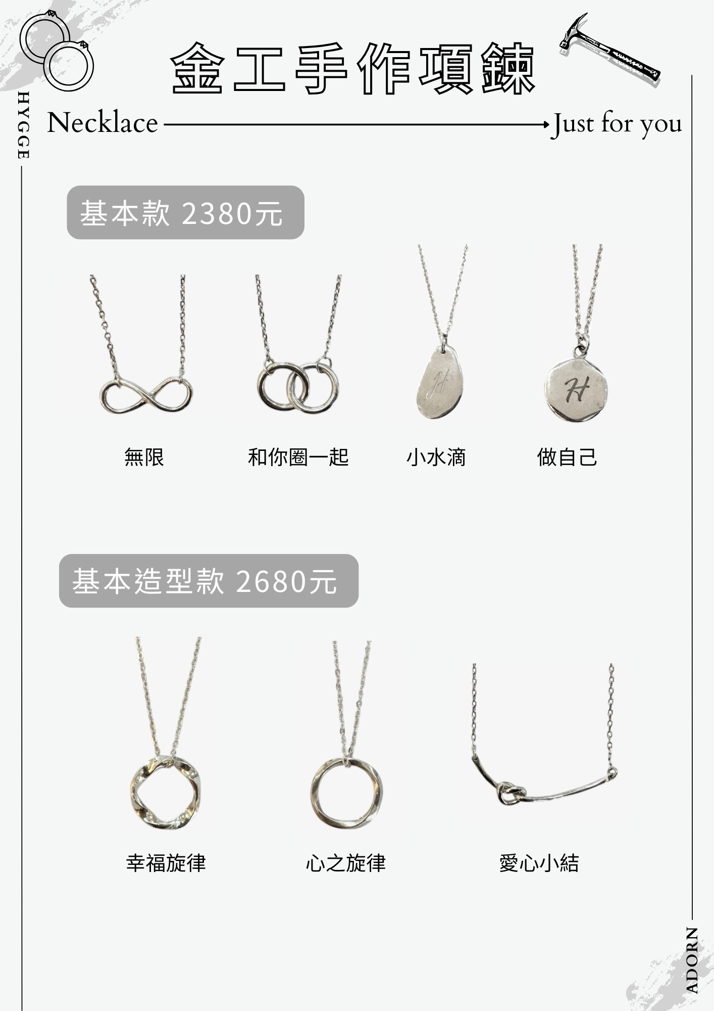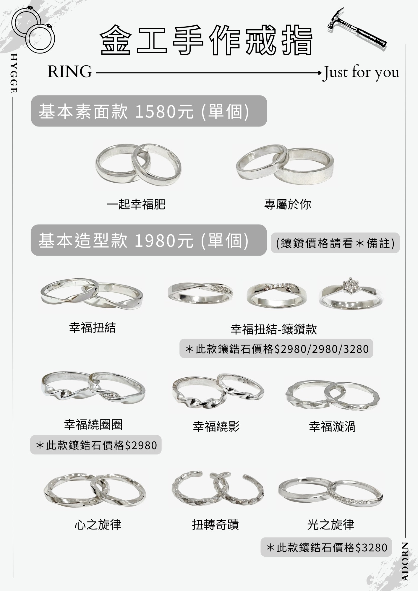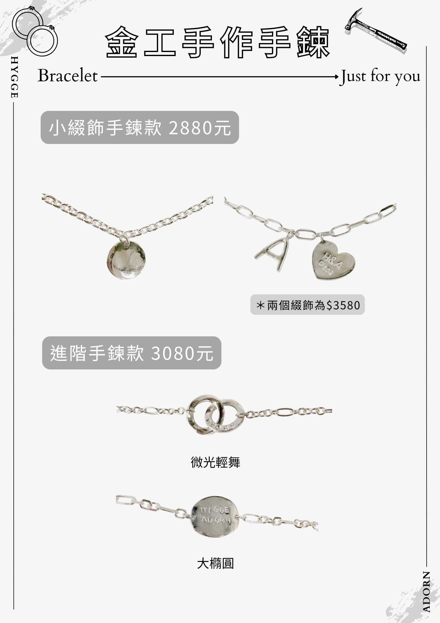 1.戒指、手環、項鍊均在此預約,預約的訂金1000元/位,兩位則為2000元,依此類推,手作費用請看款式名細上金額,當天至現場看實品挑選完後再補款式差額。