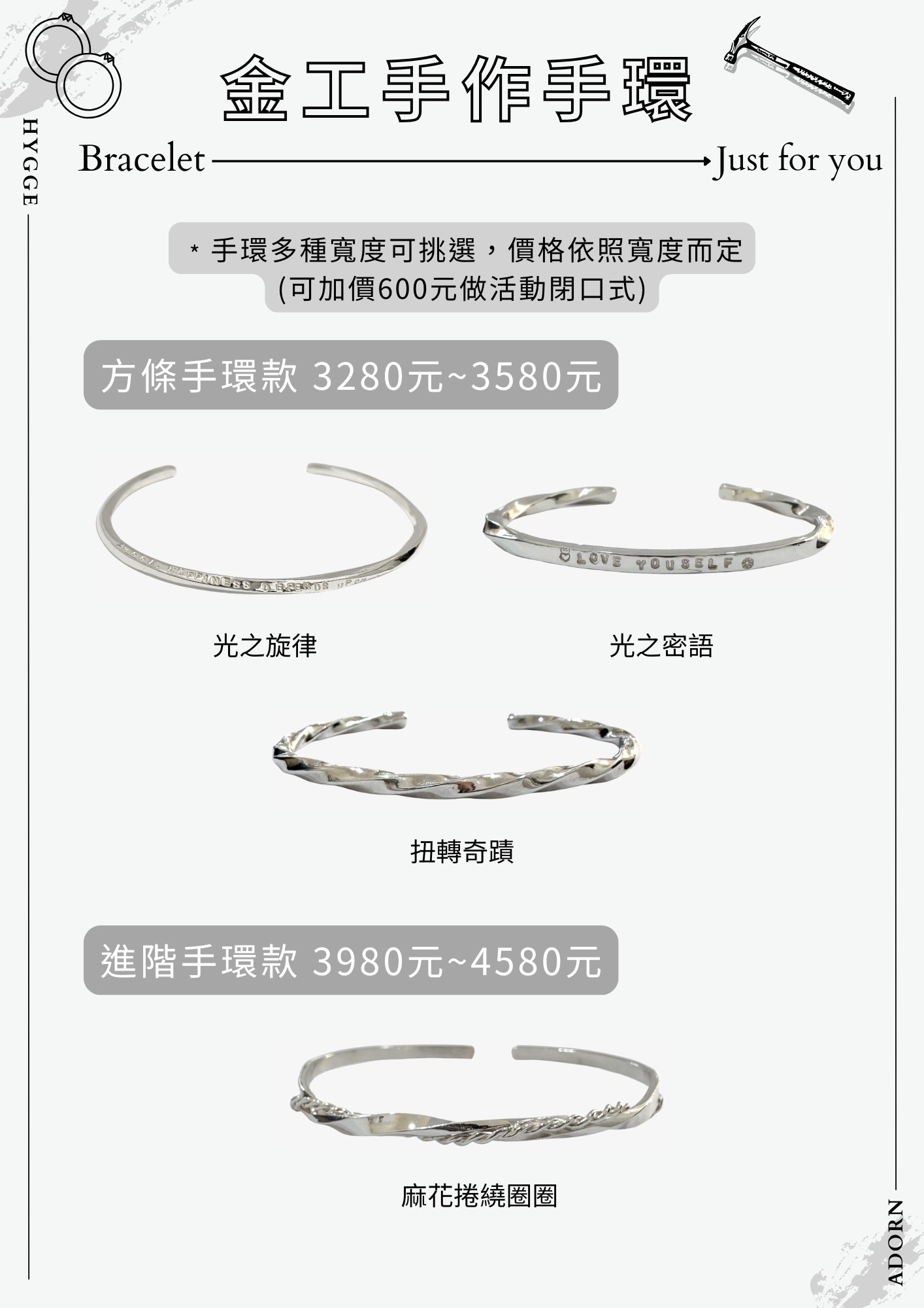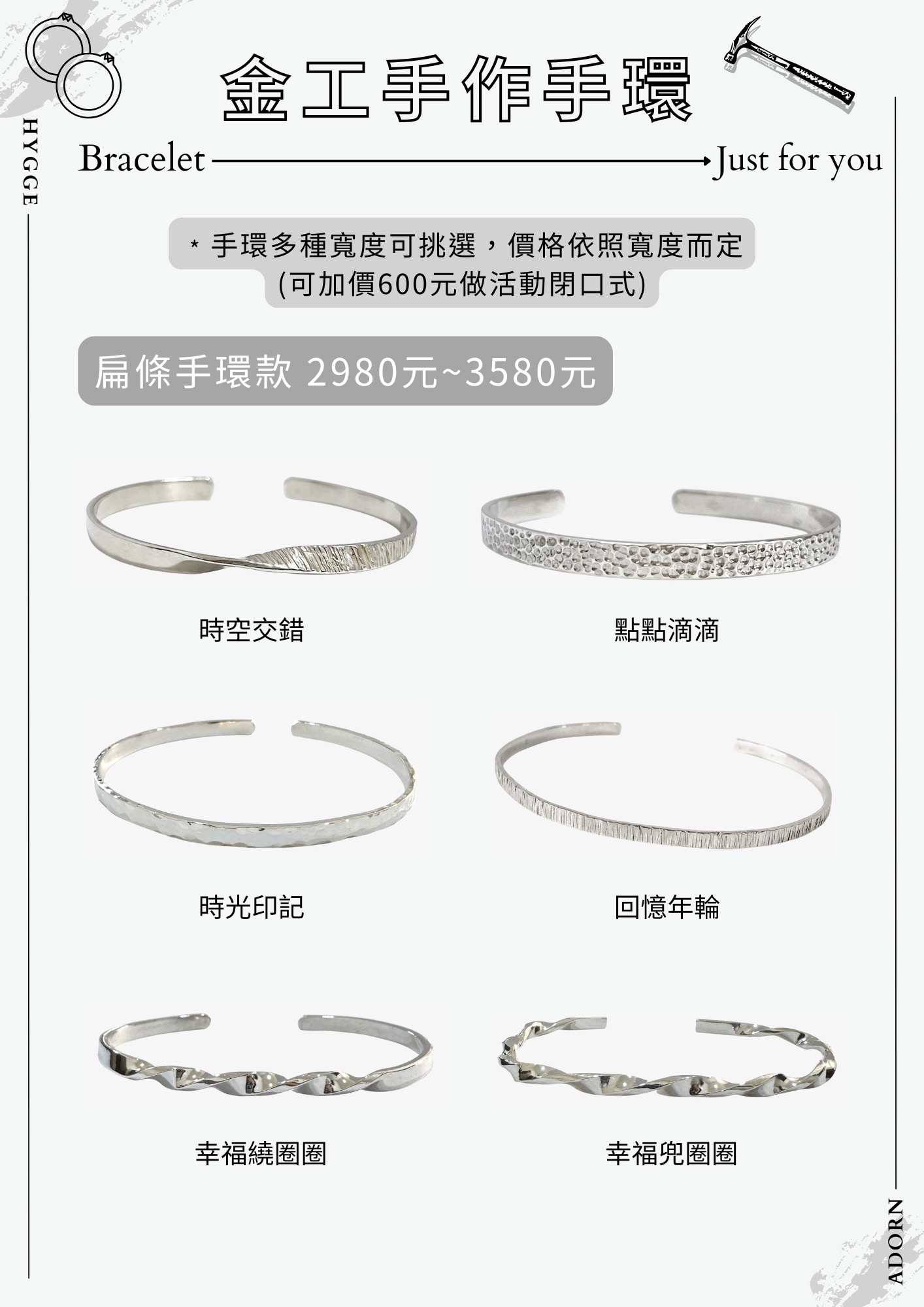 2.手環平面款式寬度為3mm、正方條為2mm,可至現場挑選試戴後決定是否加價加寬。