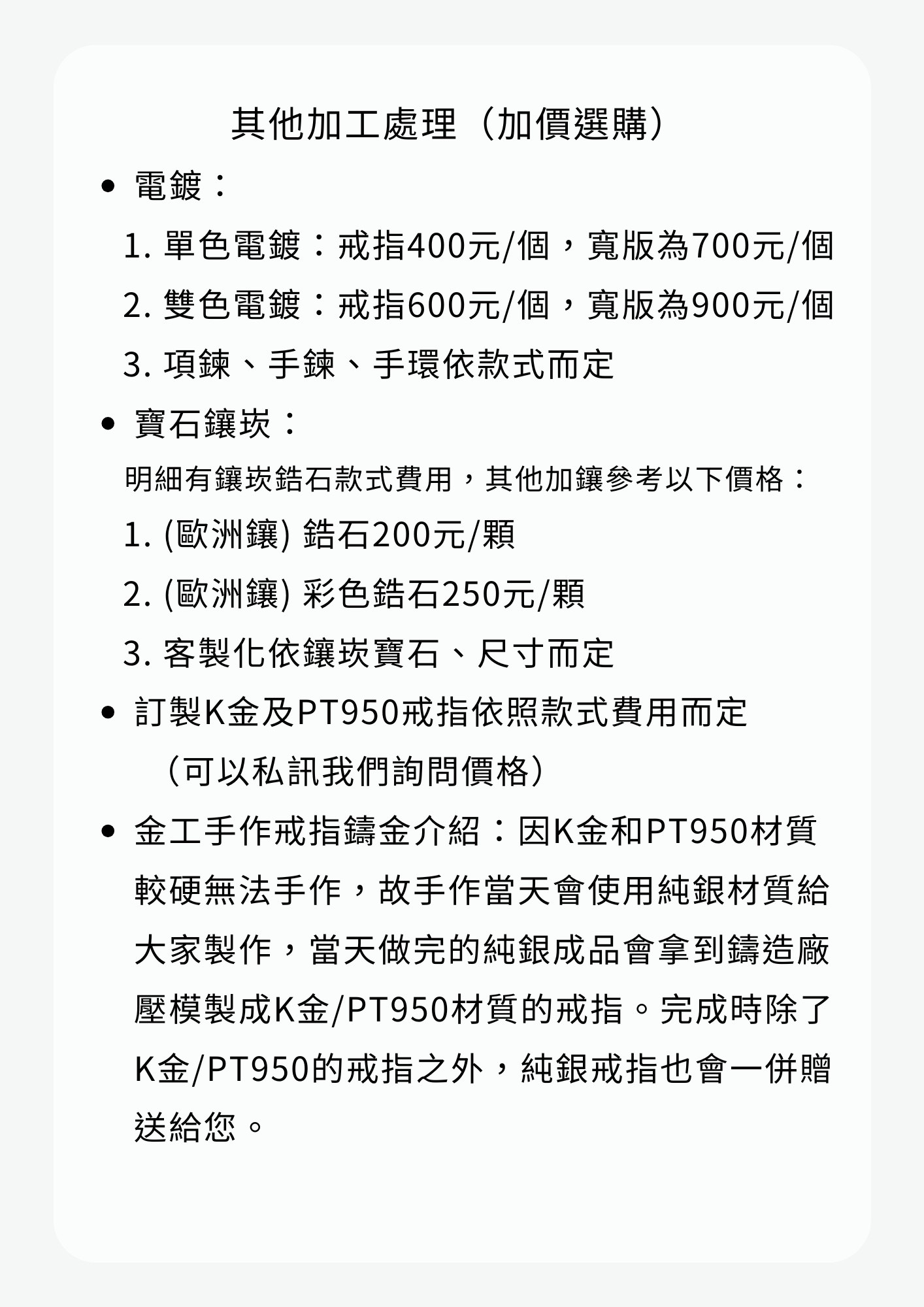 - 升級鑄造18K金、14K金、PT950,請訊息我們詢問報價