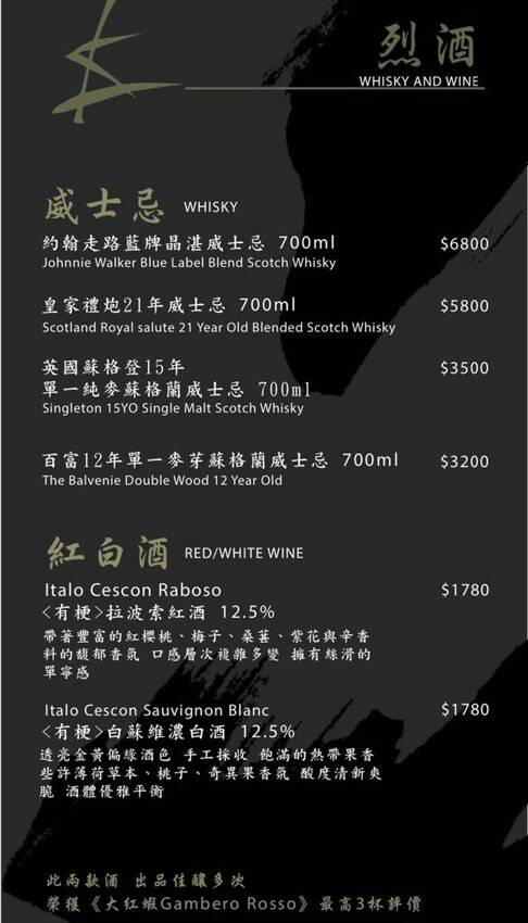 ◉低消金額不含服務費與酒水,六人以上酌收訂金 NT$1000◉